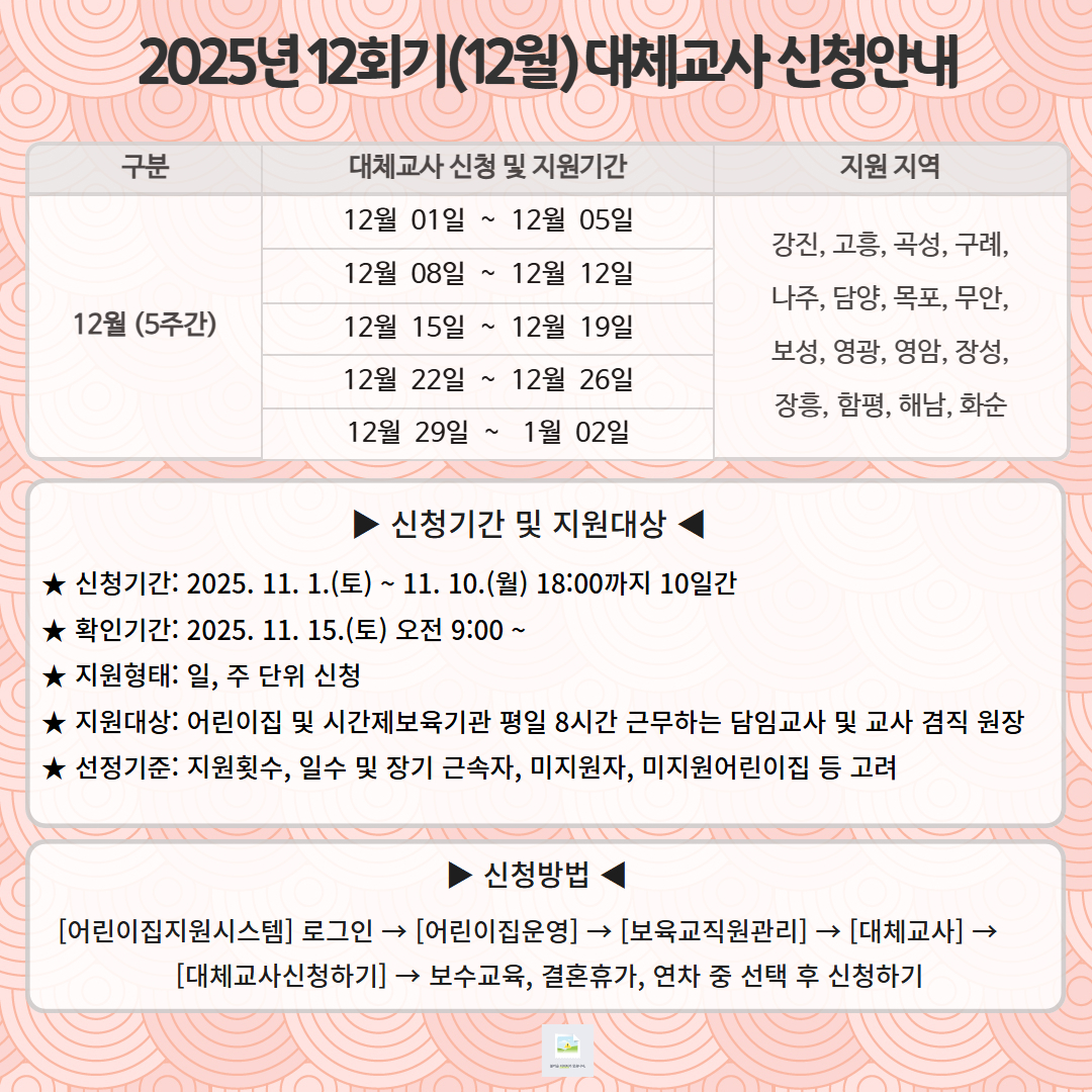 [전남센터] 2025년 대체교사 12월(12회기) 신청 안내